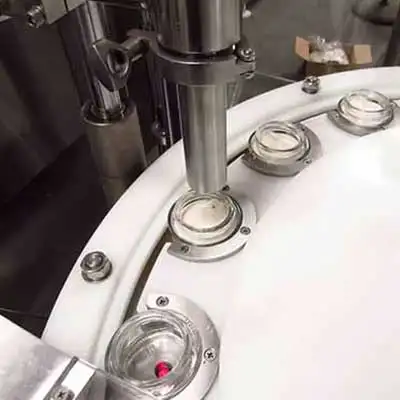 A photoelectric sensor automatically detects incoming jars, ensuring correct bottle orientation before filling. It prevents overflow, missing caps, and misaligned bottles, enhancing reliability throughout the filling and capping process.