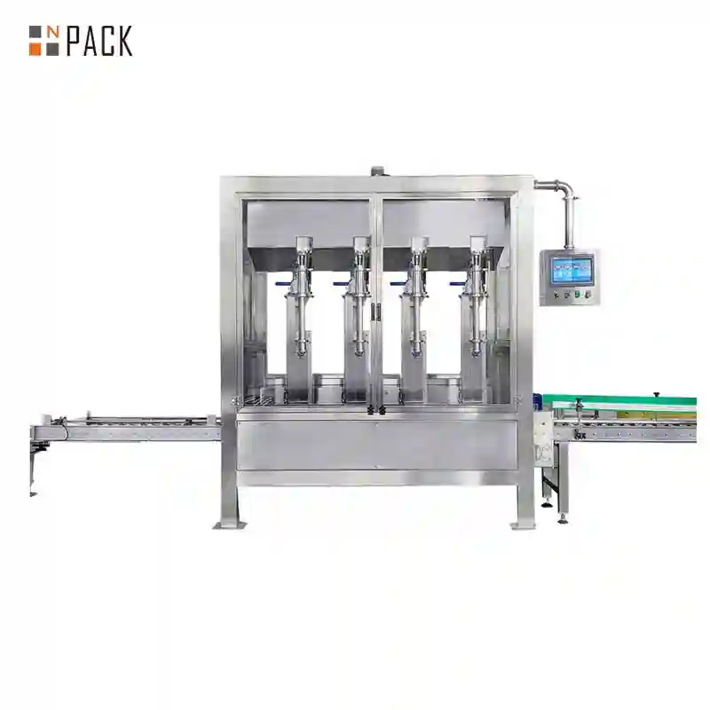 The Net Weight Filling Machine is designed for precise and efficient filling of liquids into bottles, pails, drums, or jerry cans, ideal for 5–30kg containers. Using a weight feedback system under each filling nozzle, it ensures accurate dosing and minimal product waste.