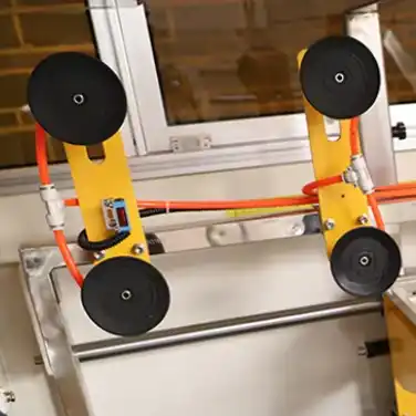 Suction cups, typically made from durable rubber or silicone materials, are mounted on adjustable mechanical arms connected to a vacuum generation system.